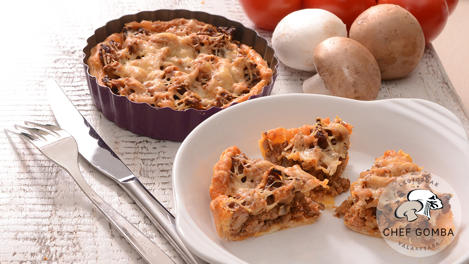 Line one large or several small tins with the puff pastry and fill with the minced meat.
